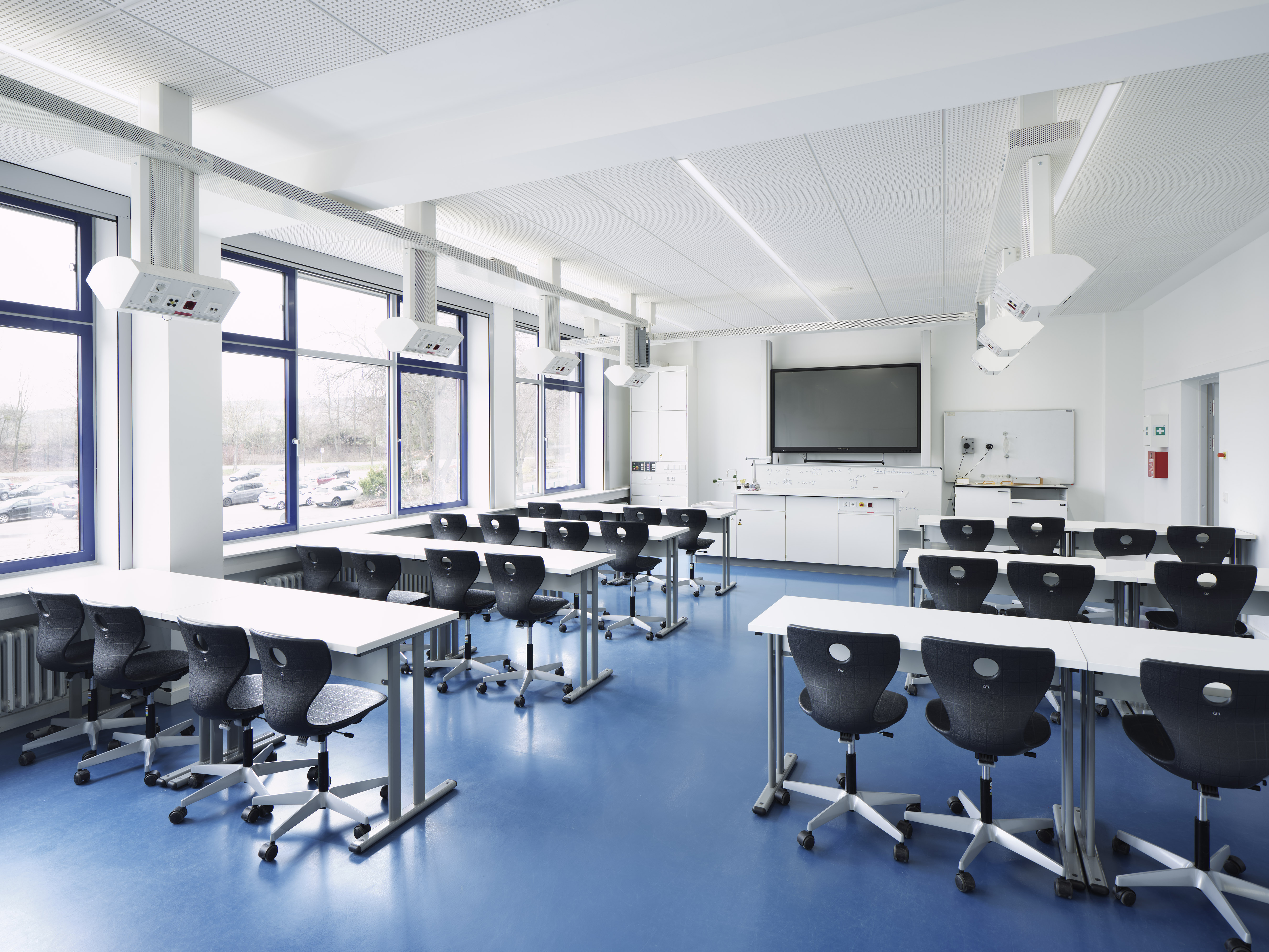 Lerninseln und offene Kommunikationszonen schaffen geschossübergreifende Orte des Lernens. In der neuen Mensa wurde die alte Tragstruktur wieder sichtbar gemacht.